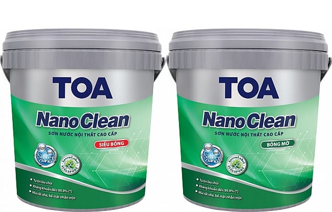 Đặc điểm Sơn Nước Toa Trong Nhà TOA NanoClean Bóng Mờ : • Nano Fluoro Carbon tạo thành 1 lớp màng bảo về chống thấm nước và dầu, giúp dễ dàng lau chùi vết bẩn. • Các hạt Nano Silver (bạc) tạo nên 1 lớp màng với những hạt Silver (Bạc) cực nhỏ và tương tác với các hạt khác làm tăng hiệu quả kháng khuẩn. Hạt Nano Silver (bạc) tiêu diệt các vi khuẩn và các mầm bệnh, an toàn cho sức khoẻ, giúp môi trường trong lành đến 99.9%. Ngoài ra, Sơn nước trong nhà TOA NanoClean Bóng Mờ còn có những tính năng đặc biệt khác như: bề mặt nhẵn mịn, chống rêu mốc, che lấp khe nứt nhỏ, dễ dặm vá hơn, độ phủ cao, độ che lấp tốt, mùi thơm dễ chịu và màu sắc bền lâu. | Sơn nước Toa Trong Nhà TOA NanoClean Bóng Mờ thích hợp sử dụng các bề mặt bê tông, hồ vữa, xi măng, gạch nhói v.v… và đặc biệt sử dụng cho những nơi có yêu cầu cao về vệ sinh như: khách sạn, nhà hàng, bệnh viện, bệnh xá, trung tâm chăm sóc y tế. | Hệ thống sơn lót Toa :• Sơn Lót Toa Trong Nhà Toa NanoClean• Sơn Lót Toa Chống Kiềm Toa 4 Seasons Alkali Sealer | Sản phẩm liên quan :• Sơn Nước Toa Ngoài Trời Toa NanoShield Siêu Bóng • Sơn Nước Toa Trong Nhà Toa Supertech Pro Int | Bao bì : 1L, 15L & 5L